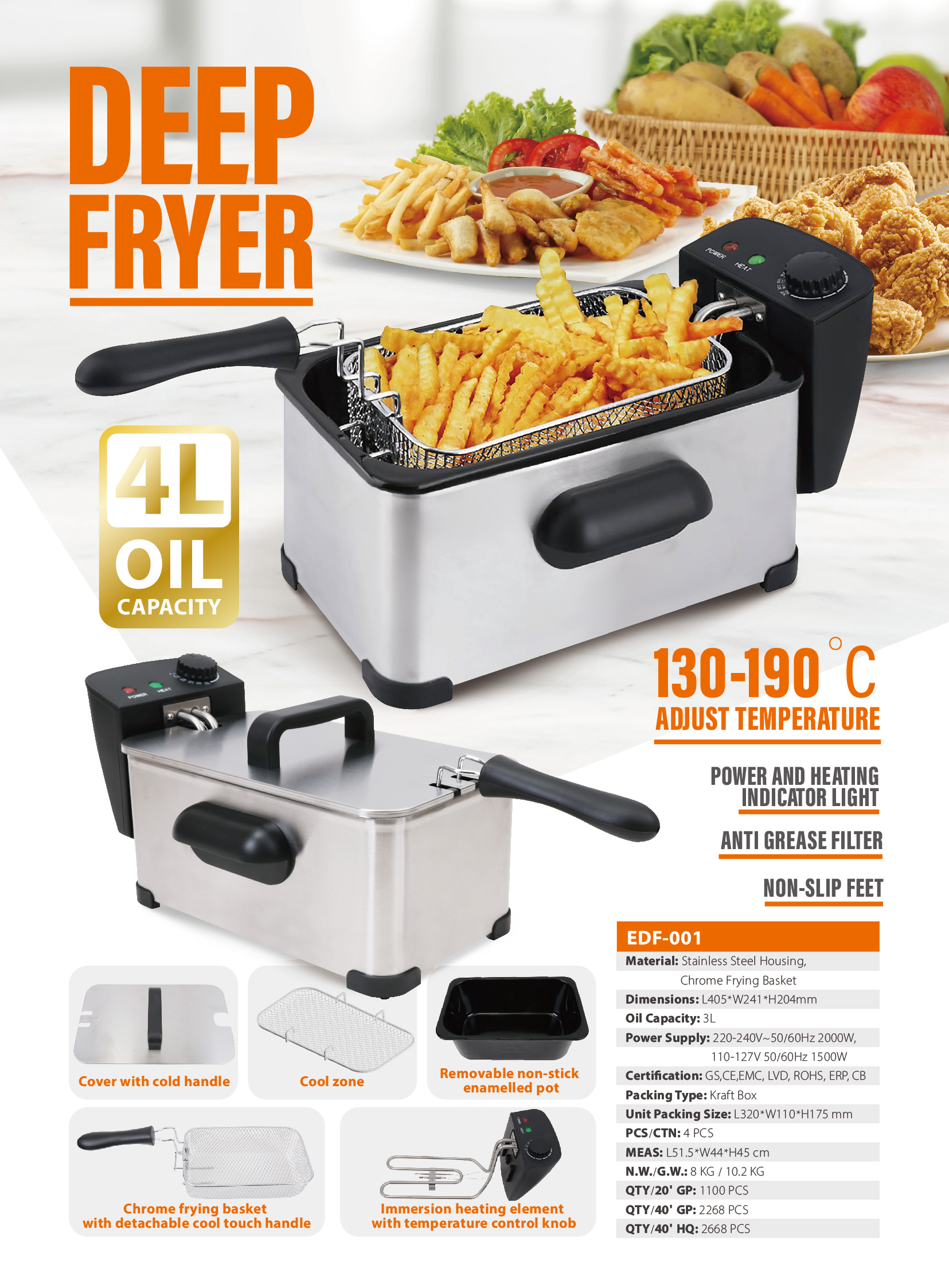 Make restaurant-style food in minutes: the immersed heating element fries food quickly and evenly, so you can expertly prepare all your deep-fried favorites, from chicken to onion rings. Easy to assemble, use and clean: this deep fryer is designed to be easy to assemble and use. After frying, the enamel-coated oil tank, cooking basket and lid are dishwasher safe for easy cleanup.